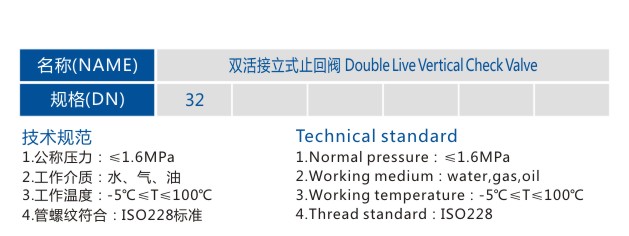 產品名稱:雙活接立式止回閥 產品型號: 查看次數: