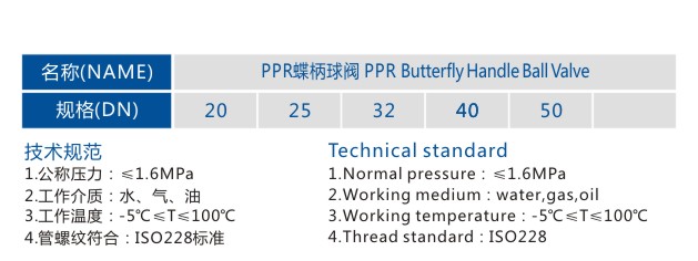 產品名稱:PPR蝶柄球閥 產品型號: 查看次數: