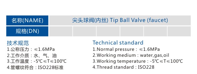 產(chǎn)品名稱:尖頭球閥(內(nèi)絲) 產(chǎn)品型號: 查看次數(shù):